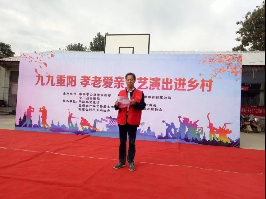 2019年10月9日,北极光社工中心联合平山县文化馆、刘家会村党支部、村委会、太行大家帮公益志愿协会及刘家会村民互助协会,在刘家会为村里270多名老人奉上了一场爱心满满的饺子宴及丰富多彩的文艺演出,让这些饱经风霜的老人们体验到了浓浓的节日温暖。