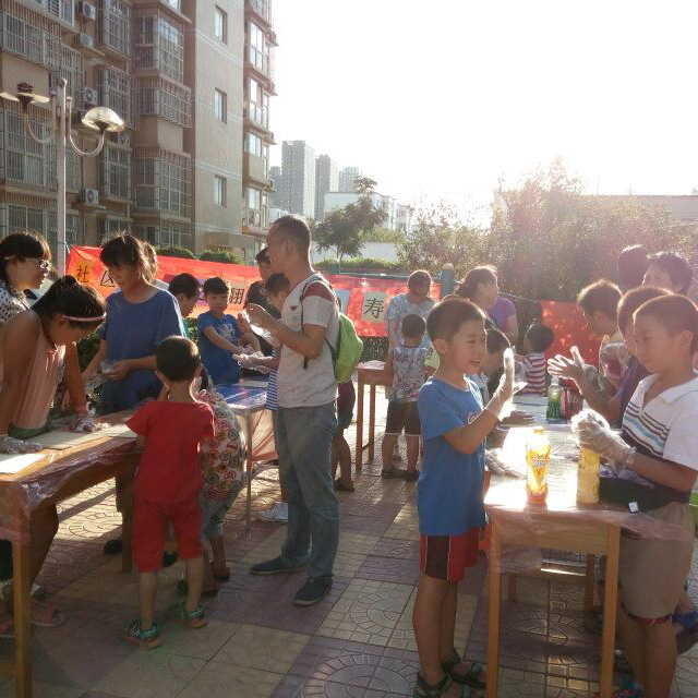 8月31日,美景东方社工站在居委会的支持下成功地在小广场举办了社区美食——"翻滚吧,寿司"活动。活动参与人数达到了25人左右,孩子们有的是在家长的陪同下一起来的,也有的是自己一人来的,孩子和家长参与度都很高,大家一起制作,一起分享。