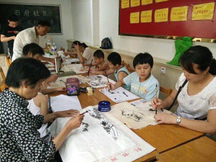 省书法协会老师莅临指导教学,帮助学员学习书法、国画的基础知识,了解学习用具的功能,培养学员的想象力和创造力,进而寻找观察和解读世界的角度,无拘无束地通过艺术手段表现自我。